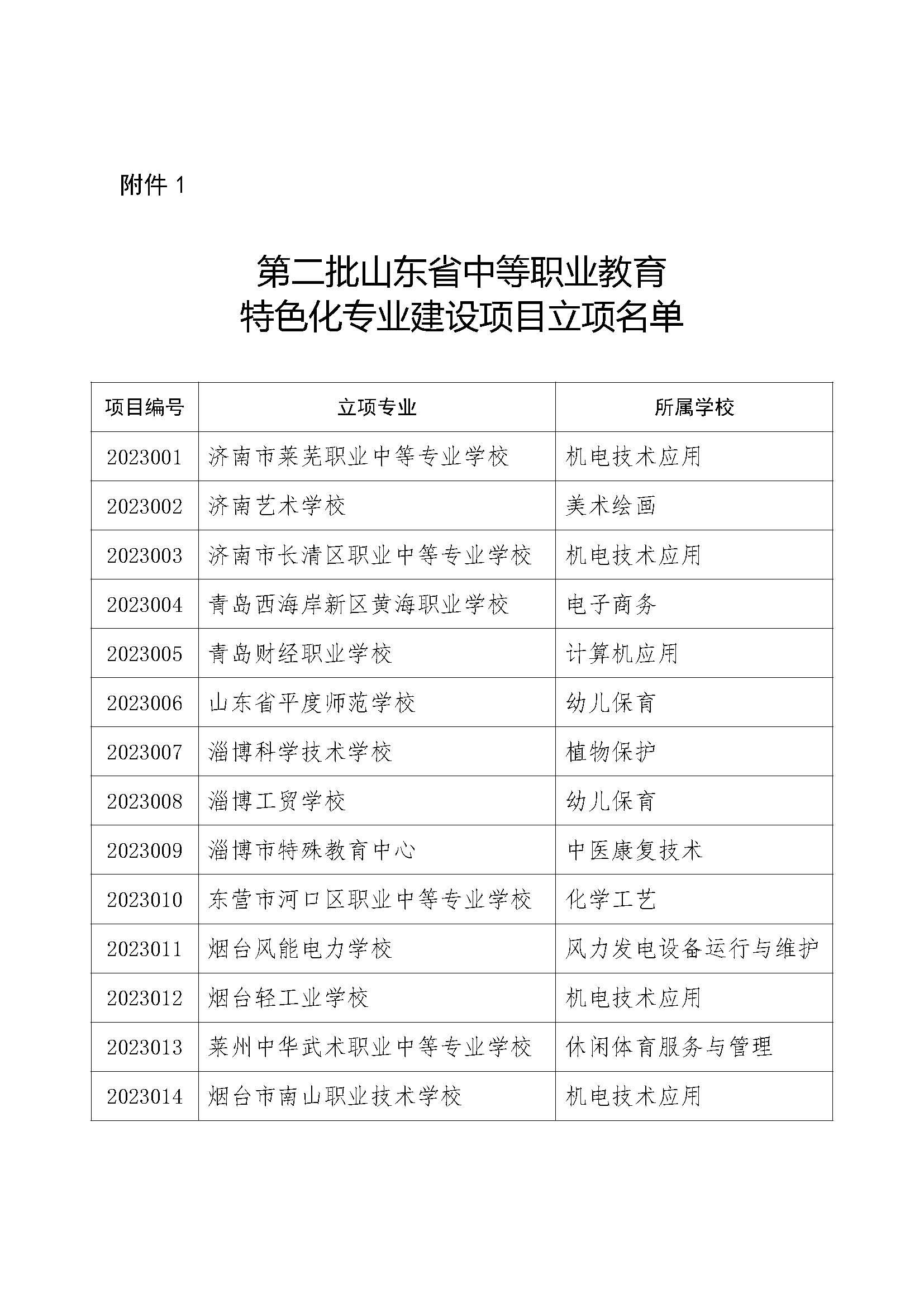 1.第二批山東省中等職業(yè)教育特色化專業(yè)建設(shè)項目立項名單.docx