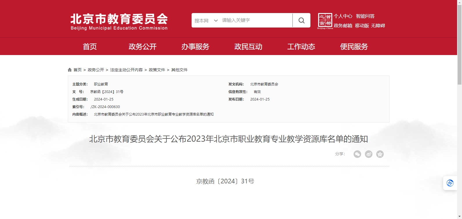 1月25日,北京市教育委員會(huì)在其官網(wǎng)發(fā)布關(guān)于公布2023年北京市職業(yè)教育專業(yè)教學(xué)資源庫名單的通知,根據(jù)市教委《關(guān)于開展2023年北京市職業(yè)教育專業(yè)教學(xué)資源庫遴選建設(shè)工作的通知》(京教函〔2023〕29......