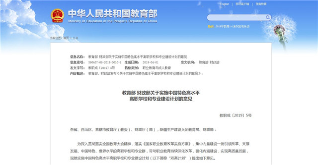 教育部財政部聯合發(fā)文 高職迎來雙高計劃