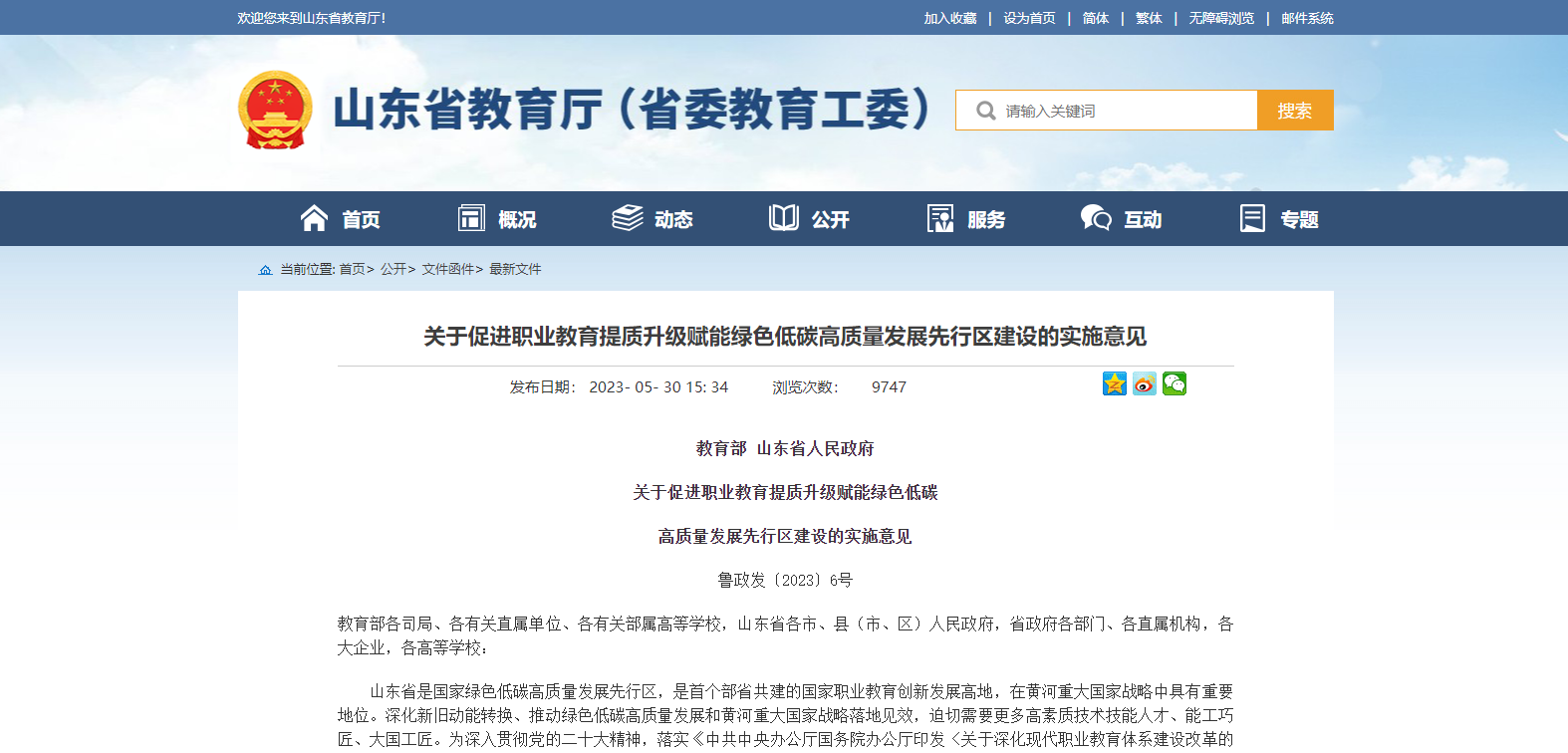 教育部 山東省人民政府雙部門發(fā)布關于促進職業(yè)教育提質升級賦能綠色低碳 高質量發(fā)展先行區(qū)建設的實施意見