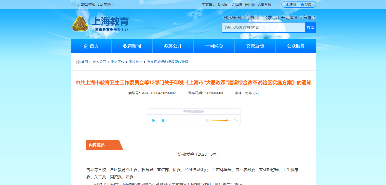 中共上海市教育衛(wèi)生工作委員會等12部門關于印發(fā)《上海市“大思政課”建設綜合改革試驗區(qū)實施方案》的通知