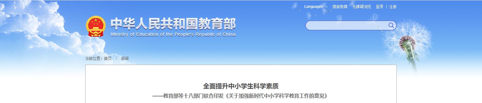 全面提升中小學生科學素質 ——教育部等十八部門聯(lián)合印發(fā)《關于加強新時代中小學科學教育工作的意見》
