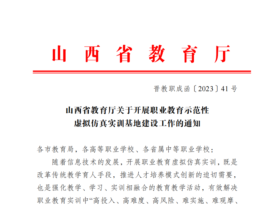 山西省教育廳發(fā)布關于開展職業(yè)教育示范性虛擬仿真實訓基地建設工作的通知