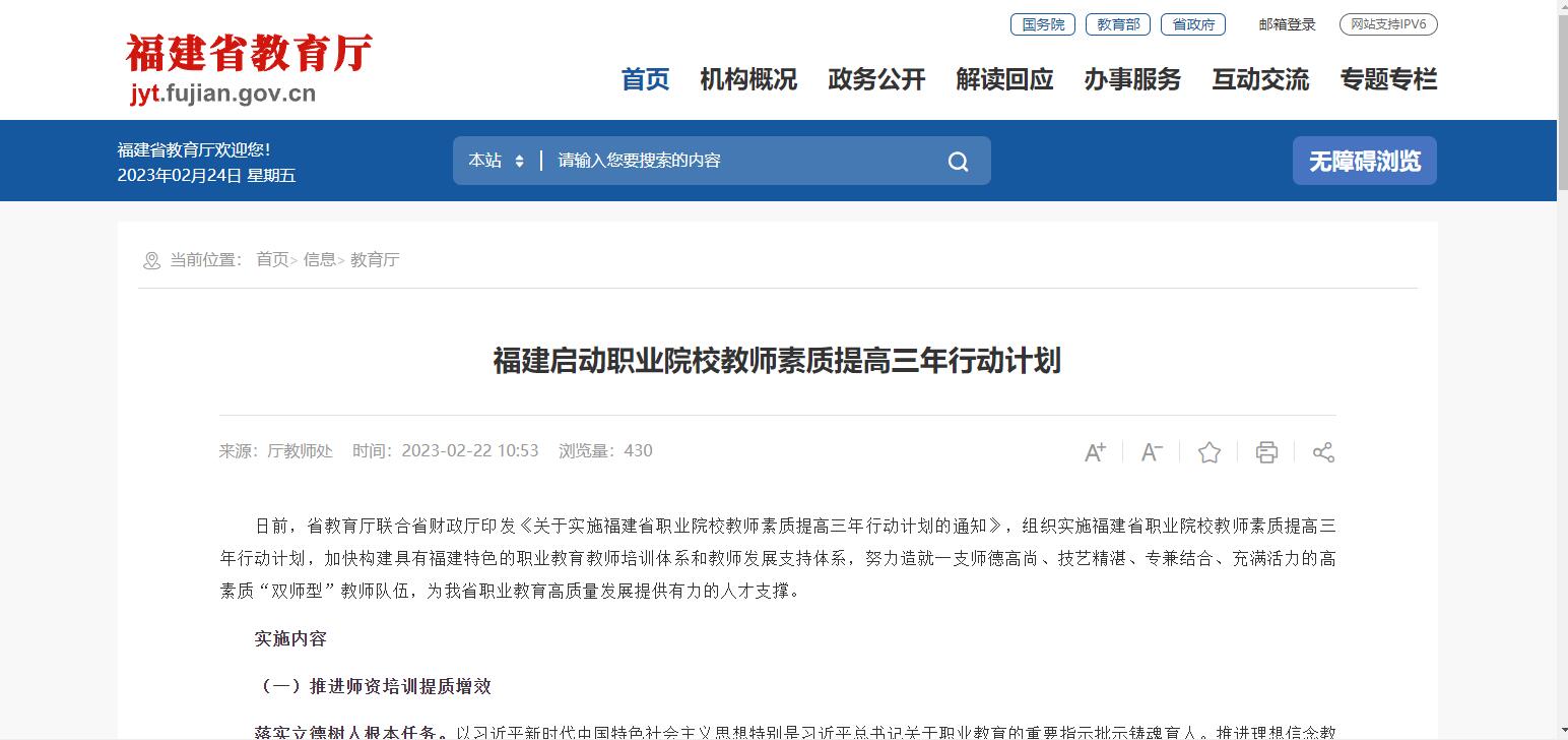 福建啟動職業(yè)院校教師素質(zhì)提高三年行動計(jì)劃