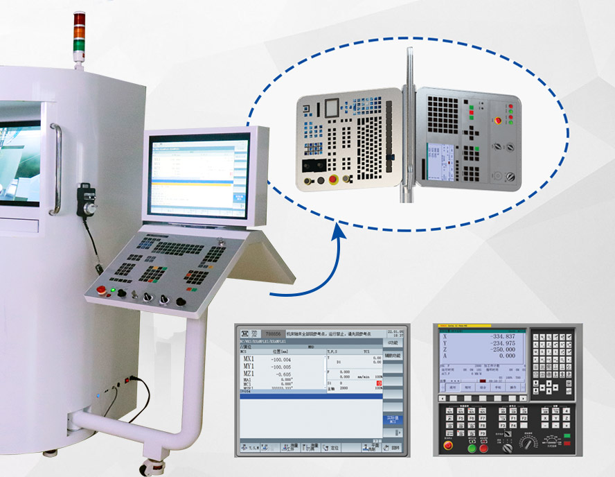 數(shù)控I8多軸智能訓(xùn)練機(jī)的操作面板,面板的布局與真實(shí)的數(shù)控設(shè)備面板一致,更為重要的是全國首創(chuàng)的支持更換操作面板專利產(chǎn)品。提供多達(dá)25款機(jī)型,覆蓋了數(shù)控車、數(shù)控銑、加工中心、四軸加工中心和五軸加工中心等多種類型機(jī)床。系統(tǒng)面板支持11款系統(tǒng)面板,包括了三軸的法蘭克、西門子、華中、廣數(shù)等。所有模板、操作精度、顯示精度與真實(shí)數(shù)控機(jī)床一致。