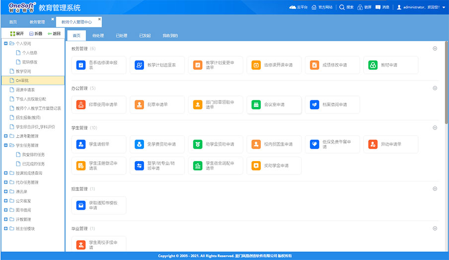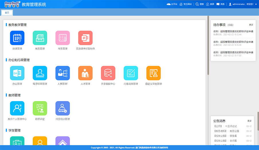 系統(tǒng)由原來(lái)的桌面級(jí)的管理系統(tǒng)轉(zhuǎn)變?yōu)槊嫦蛴脩籼峁┓?wù)的功能強(qiáng)大的企業(yè)級(jí)應(yīng)用平臺(tái)。如工作報(bào)告、任務(wù)交辦、項(xiàng)目管理、工作任務(wù)管理、管理看板、學(xué)校知識(shí)庫(kù)、檔案管理等這些工具支撐日常工作,為教職工工作增效,為干部決策和管理賦能,可提大提升全員工作效率和學(xué)校管理水平。